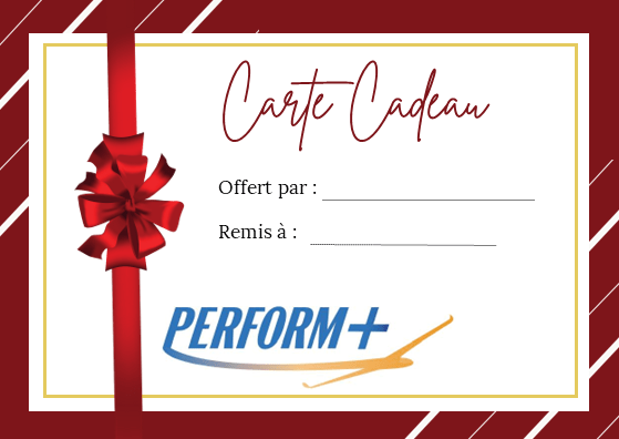 Vous souhaitez offrir de beaux cadeaux à vos proches pour les fêtes de fin d’année, pour un anniversaires ou toutes autres occasions, les cartes cadeaux de chez Perform Plus sont faites pour vous !